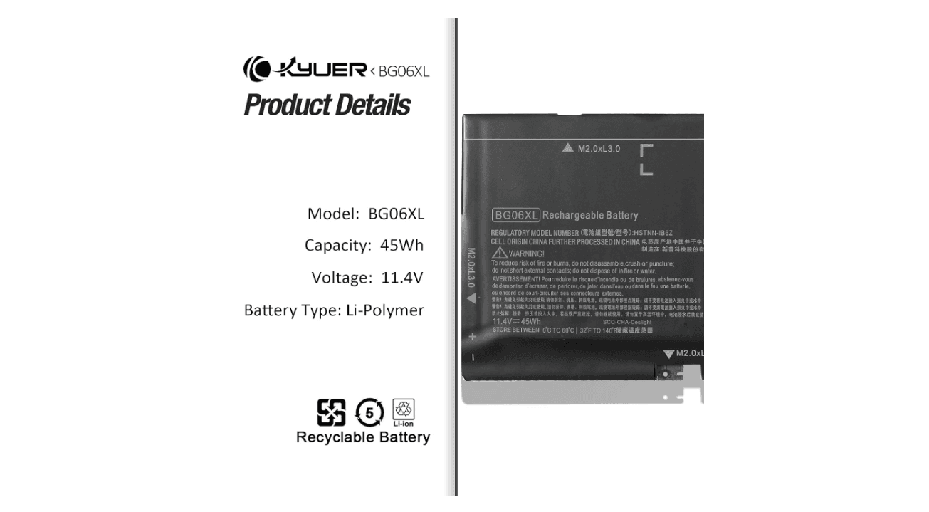Compatible avec les modèles HP acceptant la batterie BG06XL. Installation simple et rapide sans outil spécifique.